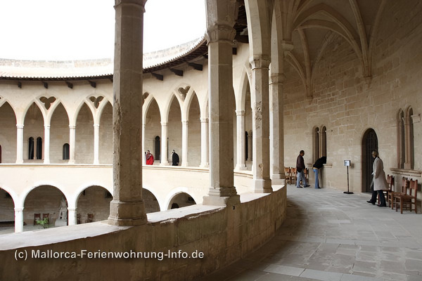 Das Castell de Bellver ist mit seiner besonderen Form als kreisförmiger Verteidigungsbau (erbaut im katalanischen Gotikstil) einzigartig in Spanien. Die Festung thront 112 m über Palma und bietet einen fantastischen Blick auf die Hauptstadt der Insel, über die Bucht von Palma de Mallorca mit Kathedralen und Hafen.